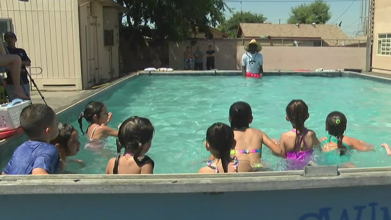 Durante el verano, ofrecen clases de natación gratuitas en piscinas portátiles de California