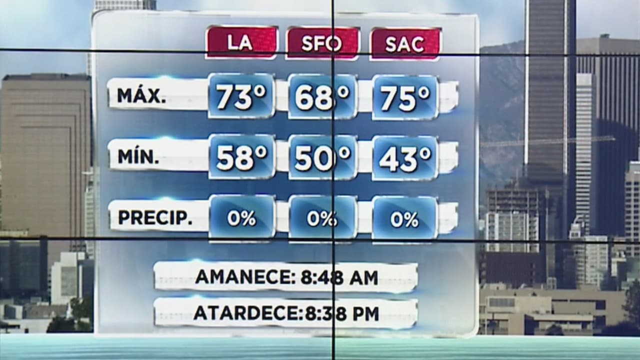 El pronóstico indica que durante la jornada las máximas alcanzarán los 73 grados Fahrenheit y las mínimas los 58 grados. No se prevén precipitaciones.