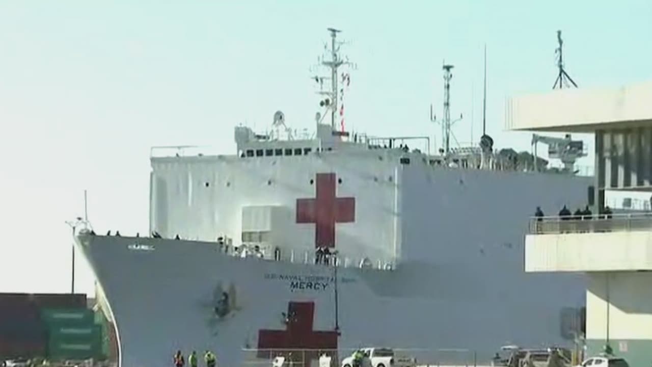 Así es el buque hospital Mercy que arribó este viernes al puerto de Los Ángeles