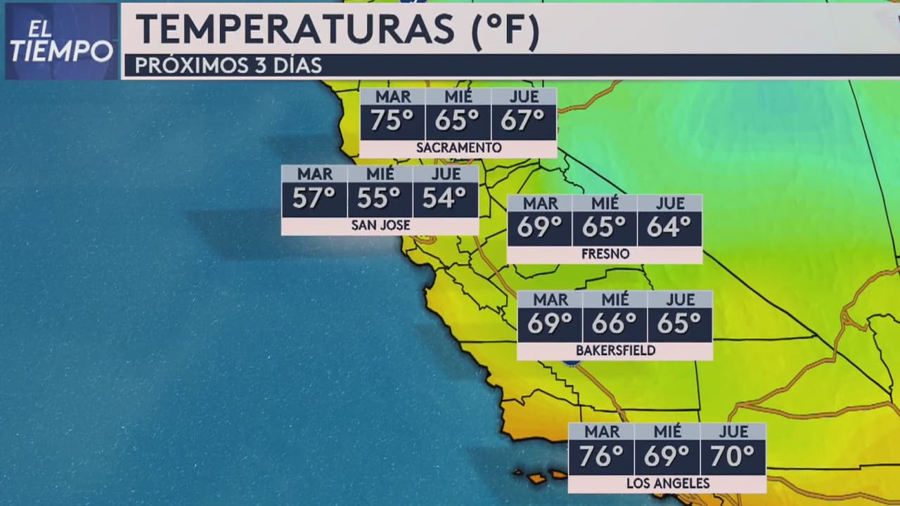Se espera que la temperatura ronde los 59 grados Fahrenheit durante estas horas. No hay probabilidad de lluvia para este día y se prevé un resto de semana soleado y estable.