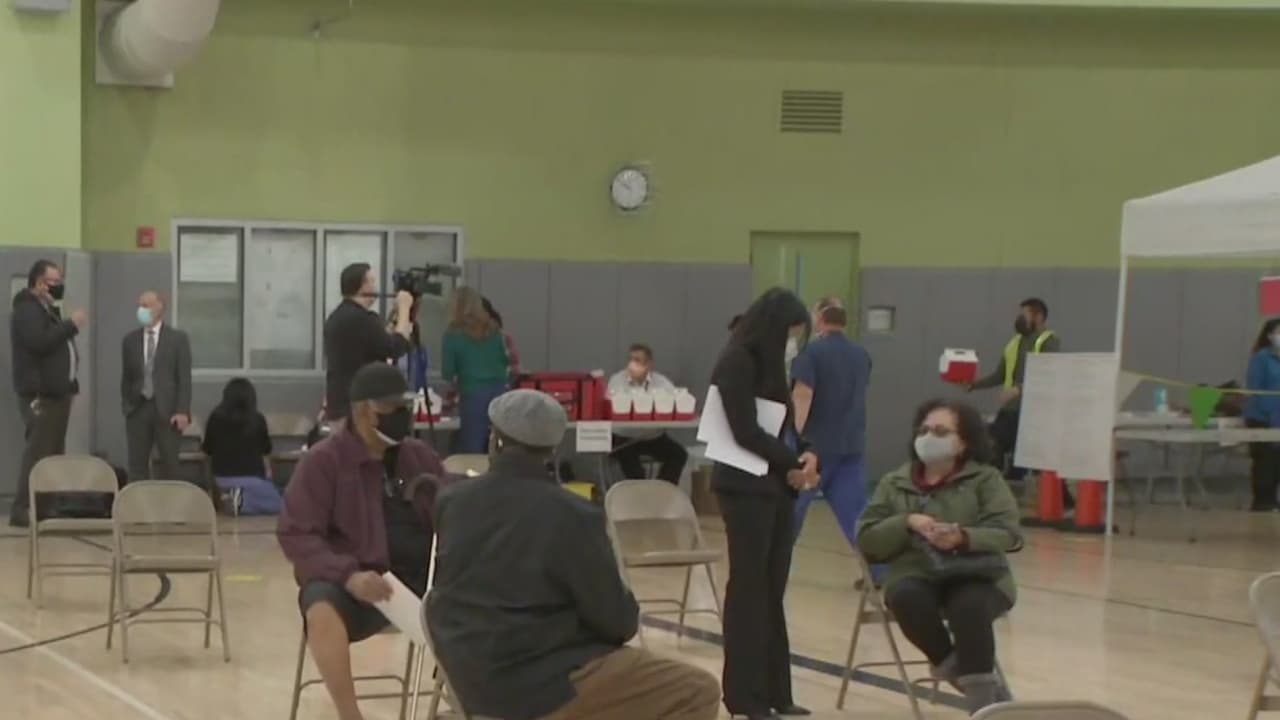 Trabajadores esenciales y personas mayores de 65 años comenzaron a vacunarse en un plantel escolar de la ciudad de Los Ángeles, y se espera que en los próximos días se expanda este proceso.