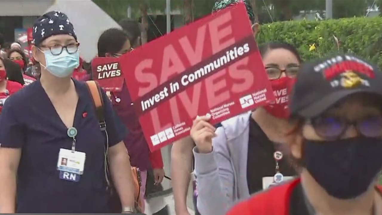Empleados de cuidado médico en el sur de California protestan para pedir mejoras en su trabajo contra el coronavirus