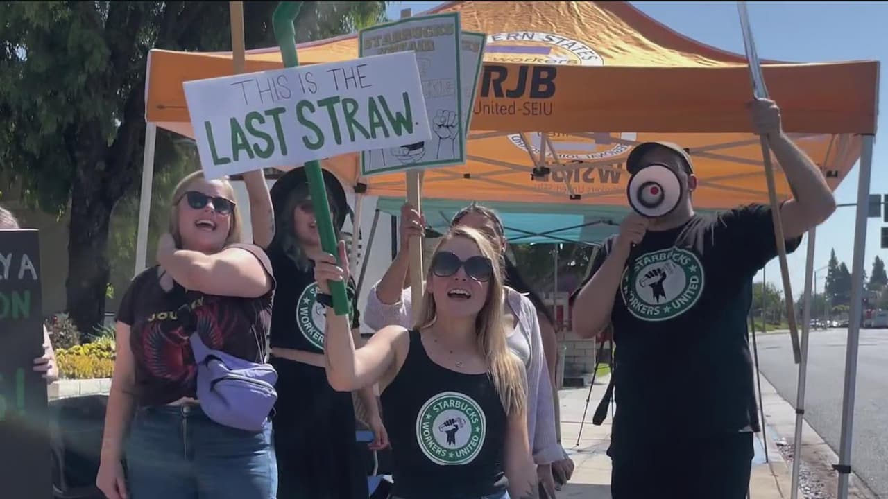 Empleados de dos cafeterías Starbucks en el sur de California protestan y denuncian injusticias en el trabajo
