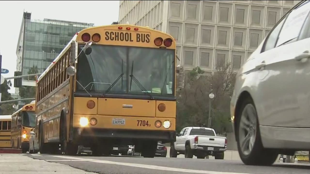 Empleados escolares realizan una caravana en el centro de Los Ángeles y este es el motivo