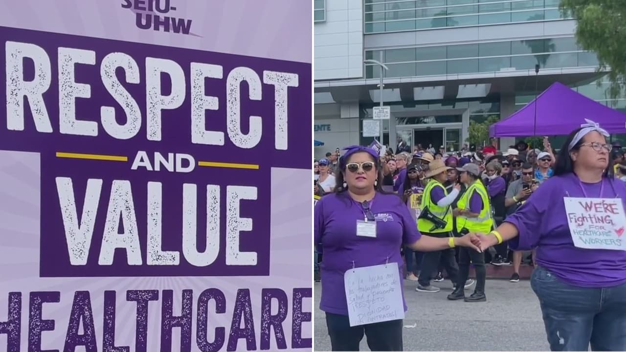 En conmemoración del Día del Trabajo, empleados del hospital Kaiser Permanente, en Los Ángeles, salieron a manifestarse para exigir un mejor contrato, más apoyo y, sobre todo, respeto tanto para ellos como para los pacientes, pues aseguran que desde la pandemia del coronavirus no han hecho contrataciones lo que ha afectado la atención de la comunidad. “Primero éramos héroes y ahora no nos quieren dar lo que merecemos”, dijo un manifestante.