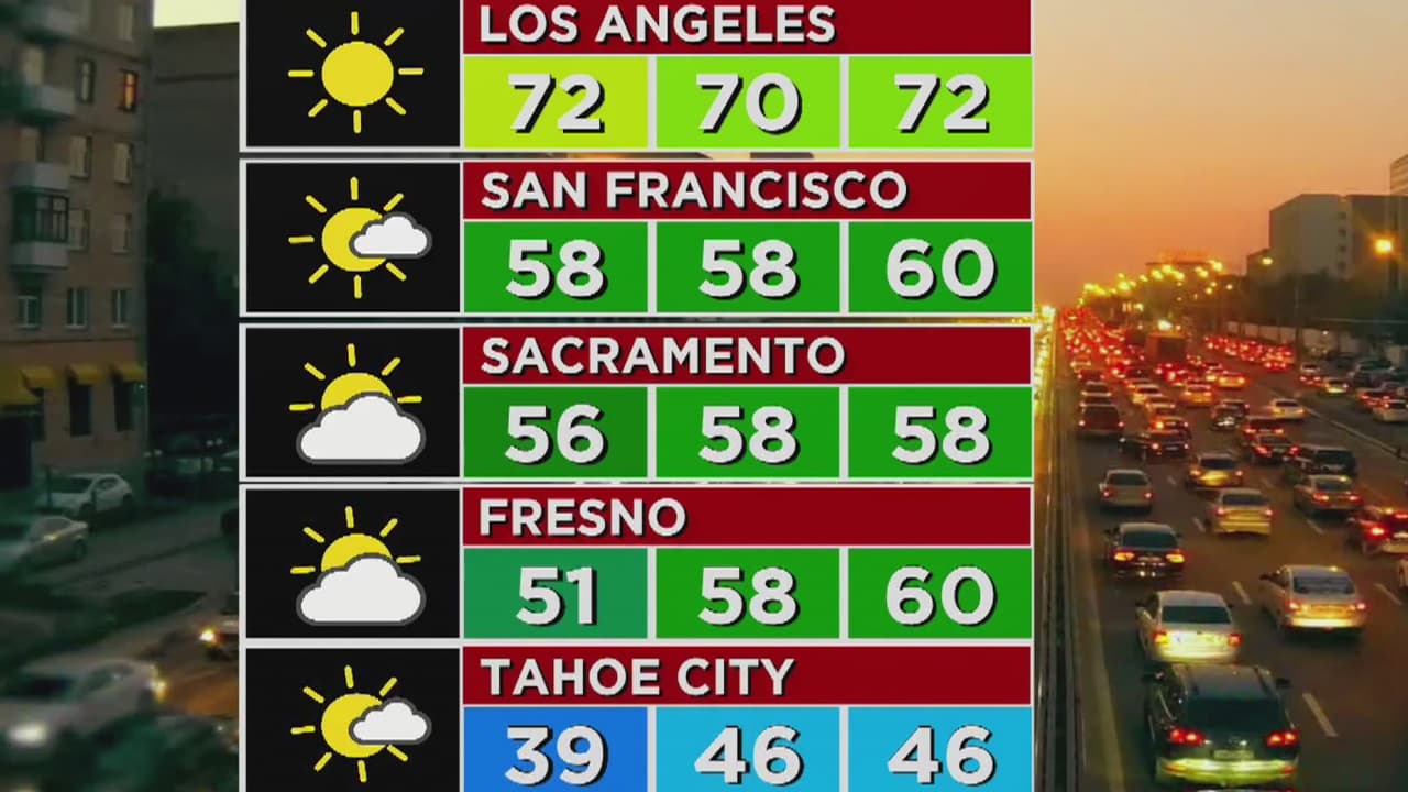 Se esperan cielos mayormente despejados y que las temperaturas estén entre los 57 y 63 grados Fahrenheit en los Ángeles y sus alrededores. No se pronostican lluvias durante las próximas horas.