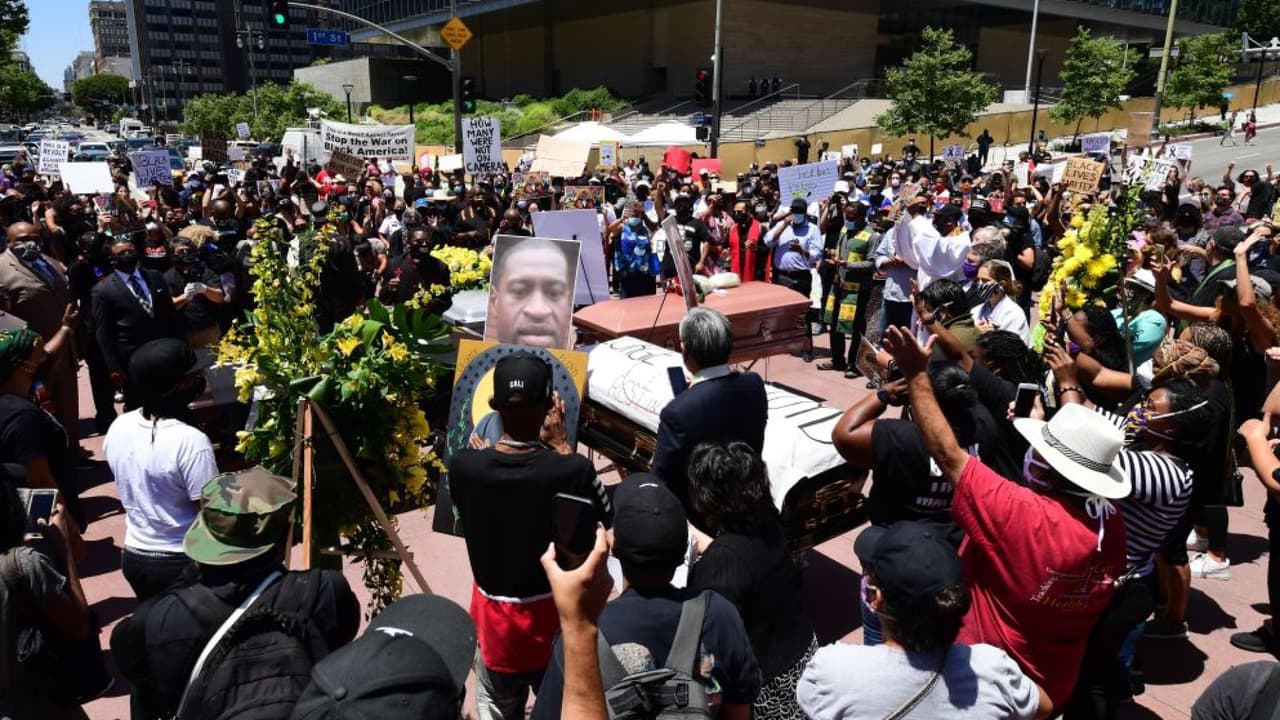 Manifestantes en Los Ángeles se unen en un funeral simbólico de George Floyd y las víctimas del racismo