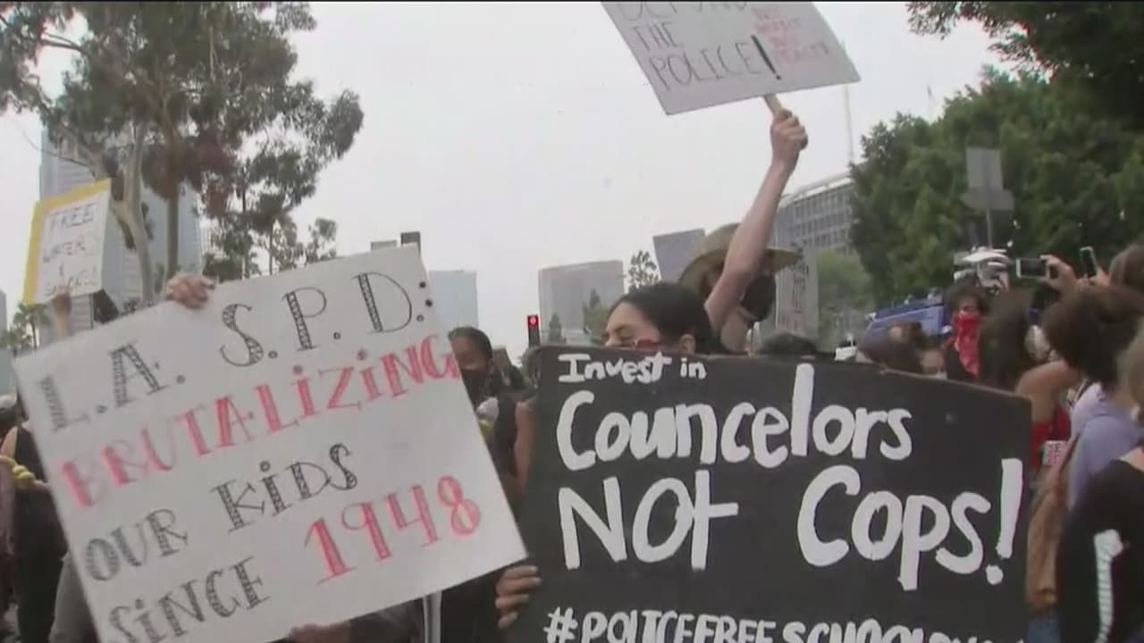 Manifestantes exigen que se retiren los fondos para la policía escolar de Los Ángeles