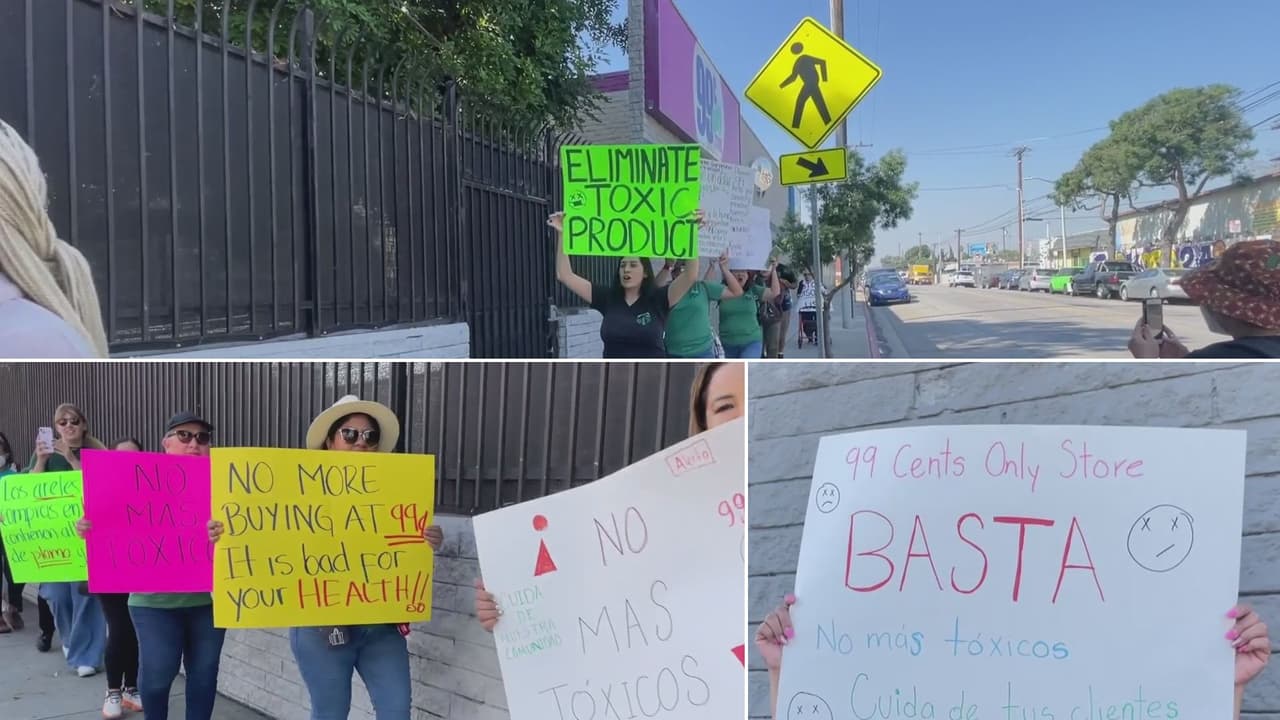 Este martes, un grupo de personas protestó al frente de una de las tiendas de 99 centavos para exigir que se eliminen productos que tienen, al parecer, sustancias tóxicas, pues dicen que pone en riesgo la salud de las personas, especialmente los de bajos ingresos, que acuden a estas tiendas. Según los manifestantes, algunos pesticidas y jabones con malos olores les habría provocado dolores de cabeza e incluso aseguran que hasta ciertas medicinas les causaron una reacción alérgica.