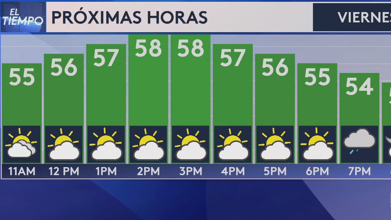 Se esperan cielos mayormente nublados y que las temperaturas estén entre los 53 y 55 grados Fahrenheit en Los Ángeles y sus alrededores durante las próximas horas.