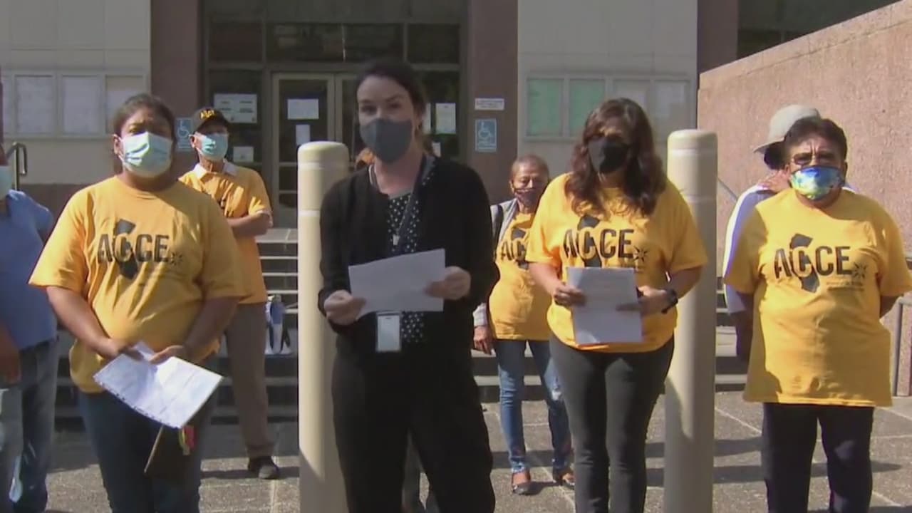 Decenas de personas se congregan frente a las instalaciones de la junta de supervisores del condado para exigir que no les cobren los intereses y los recursos otorgados por el programa ‘Pace’, ya que muchos se han quedado sin trabajo debido a la pandemia del coronavirus y no tienen cómo pagar.