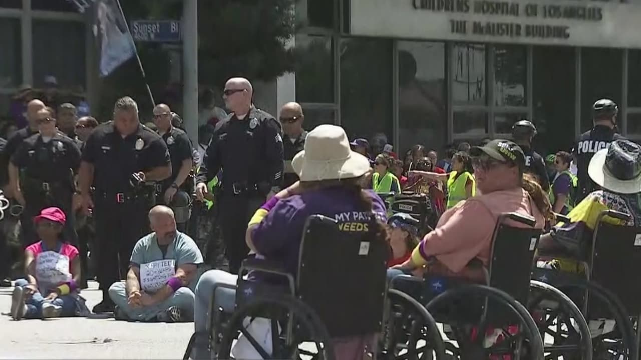 Protestas en West Hollywood durante el Labor Day en apoyo a empleados de la compañía Kaiser Permanente