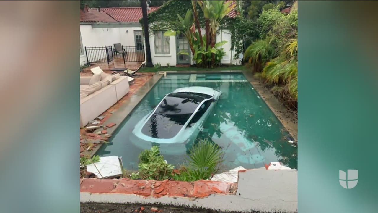 Tesla termina en piscina en casa de Pasadena en medio de la tormenta en el sur de California