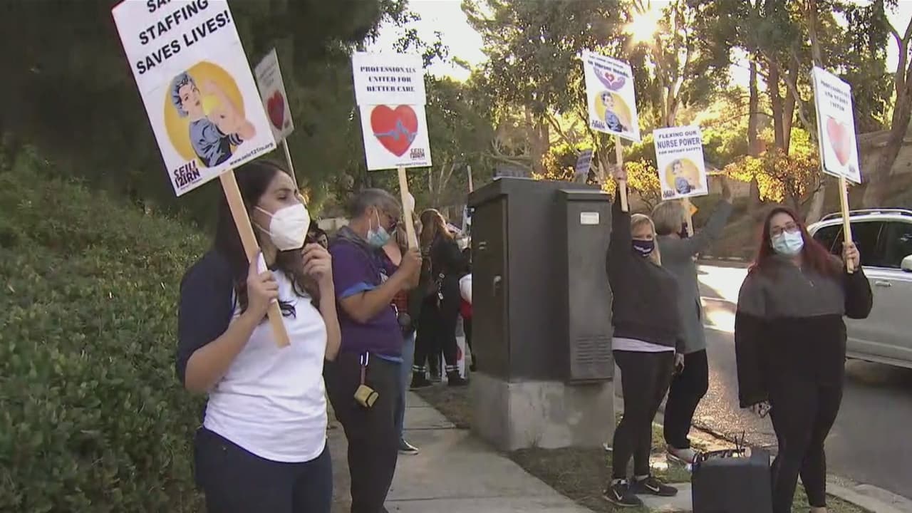 Trabajadores de la salud protestan para exigir más protección contra el coronavirus en Thousand Oaks
