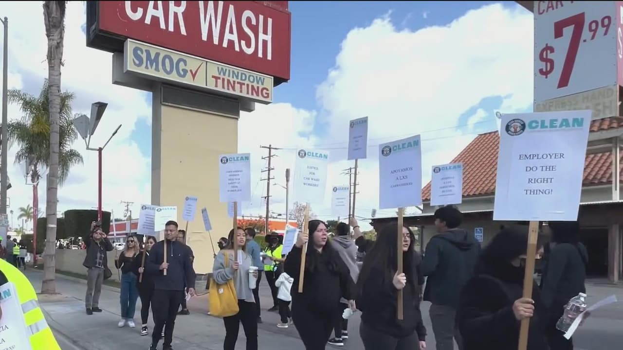 Trabajadores de un lavadero de autos en Inglewood protestan por el robo de sus salarios