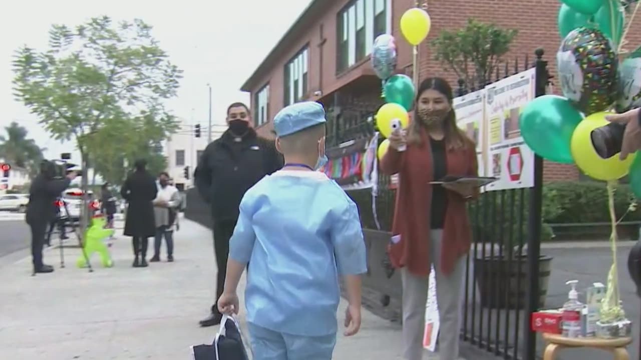 Vestidos como doctores, estudiantes de una escuela en Los Ángeles homenajean a trabajadores esenciales