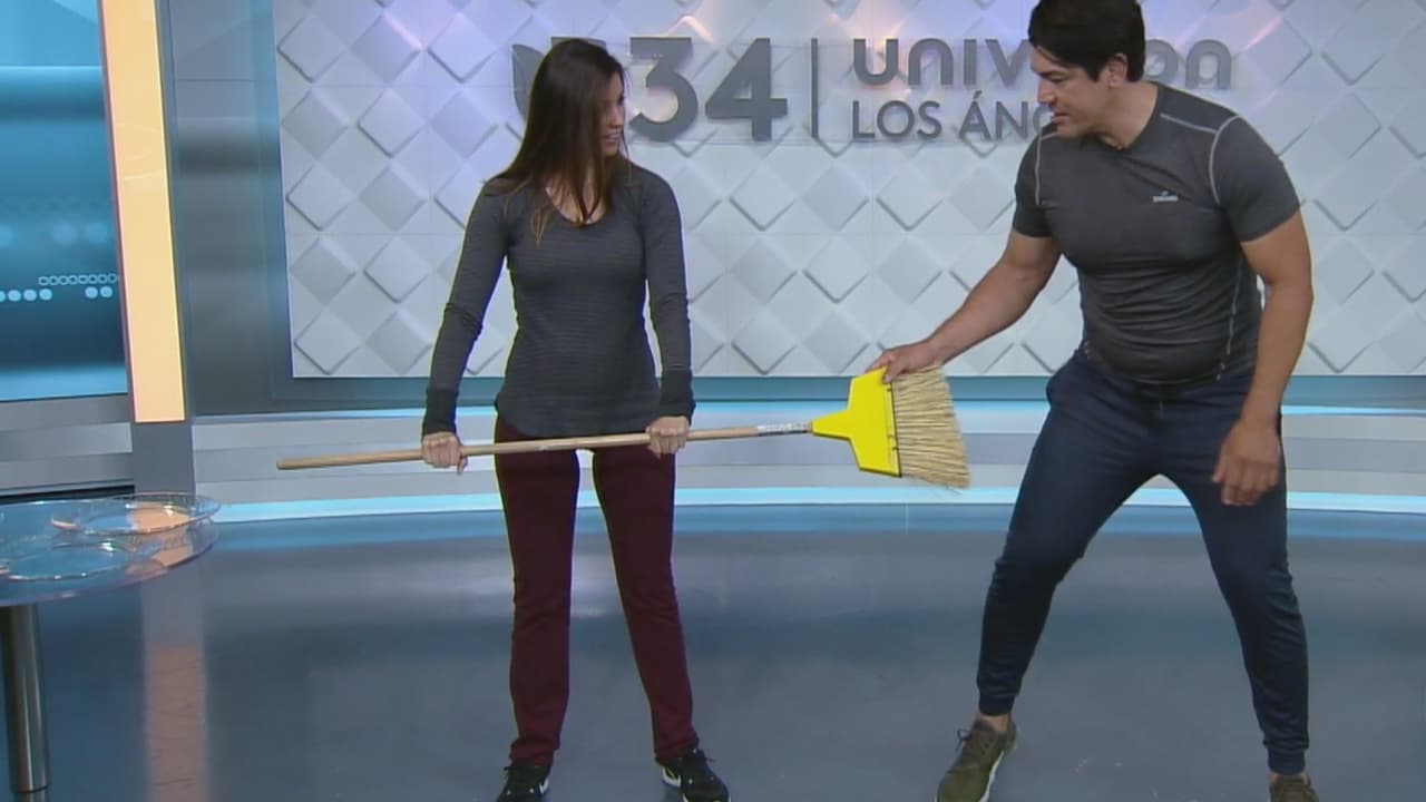 El entrenador Óscar Luna presenta una rutina para desarrollar con ayuda de los implementos de limpieza básicos de las viviendas. Recomienda dedicar al menos 15 minutos dos veces al día para ver los resultados.