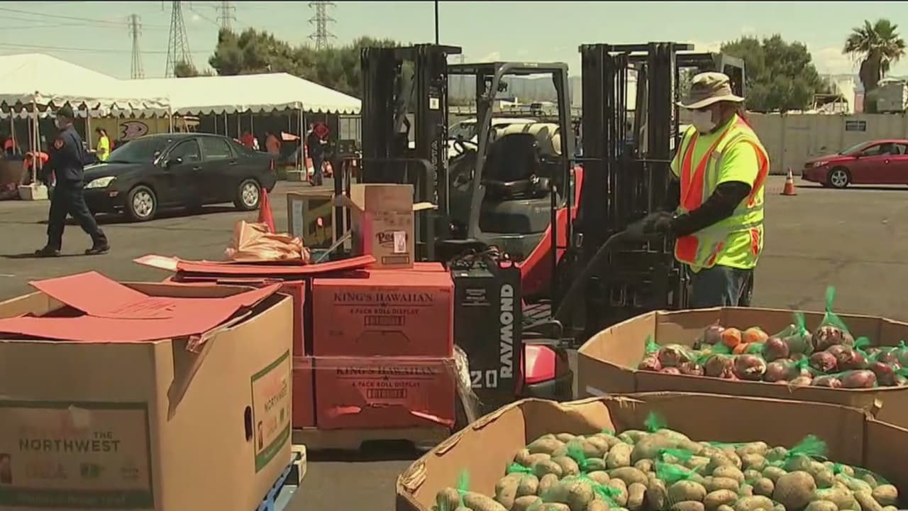 El cierre de establecimientos por el coronavirus ha generado gran demanda en el banco de comidas de Anaheim