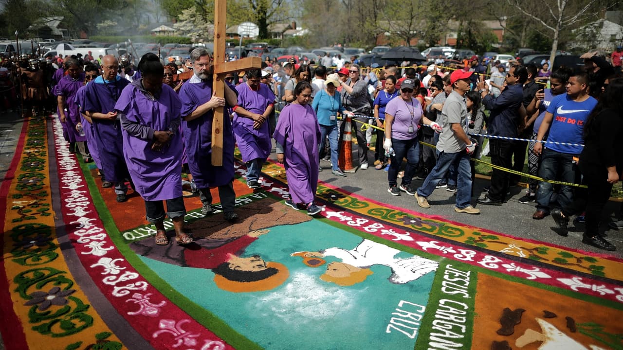 El concurso de alfombras en Los Ángeles, una colorida tradición como antesala a la Semana Santa