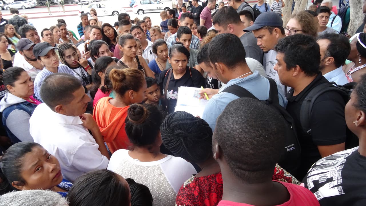 Entre los ansiosos de este lunes había rusos, haitianos, una mujer siria, una familia que algunos identificaban como griega, hondureños, guatemaltecos, salvadoreños y mexicanos.