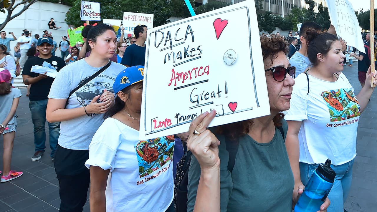 En la Placita Olvera, donde se congregaron miles de personas antes de marchar por el centro de Los Ángeles en protesta por el fin de DACA, había un cartel en el que se leía: "We are all, historically DACA children. This government action is just wrong and cruel" (históricamente todos somos hijos de DACA. Esta acción del gobierno es simplemente incorrecta y cruel).