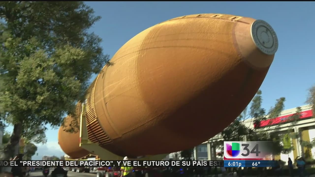 El enorme cilindro fue trasladado desde Marina del Rey hasta el Centro de Ciencias de California dejando asombrados a los habitantes de Los Angeles.