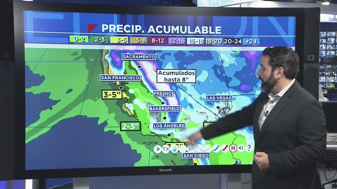 Se espera también que la nieve siga cayendo en zonas montañosas y que las temperaturas estén entre los 50 y 63 grados Fahrenheit en Los Ángeles y sus alrededores.