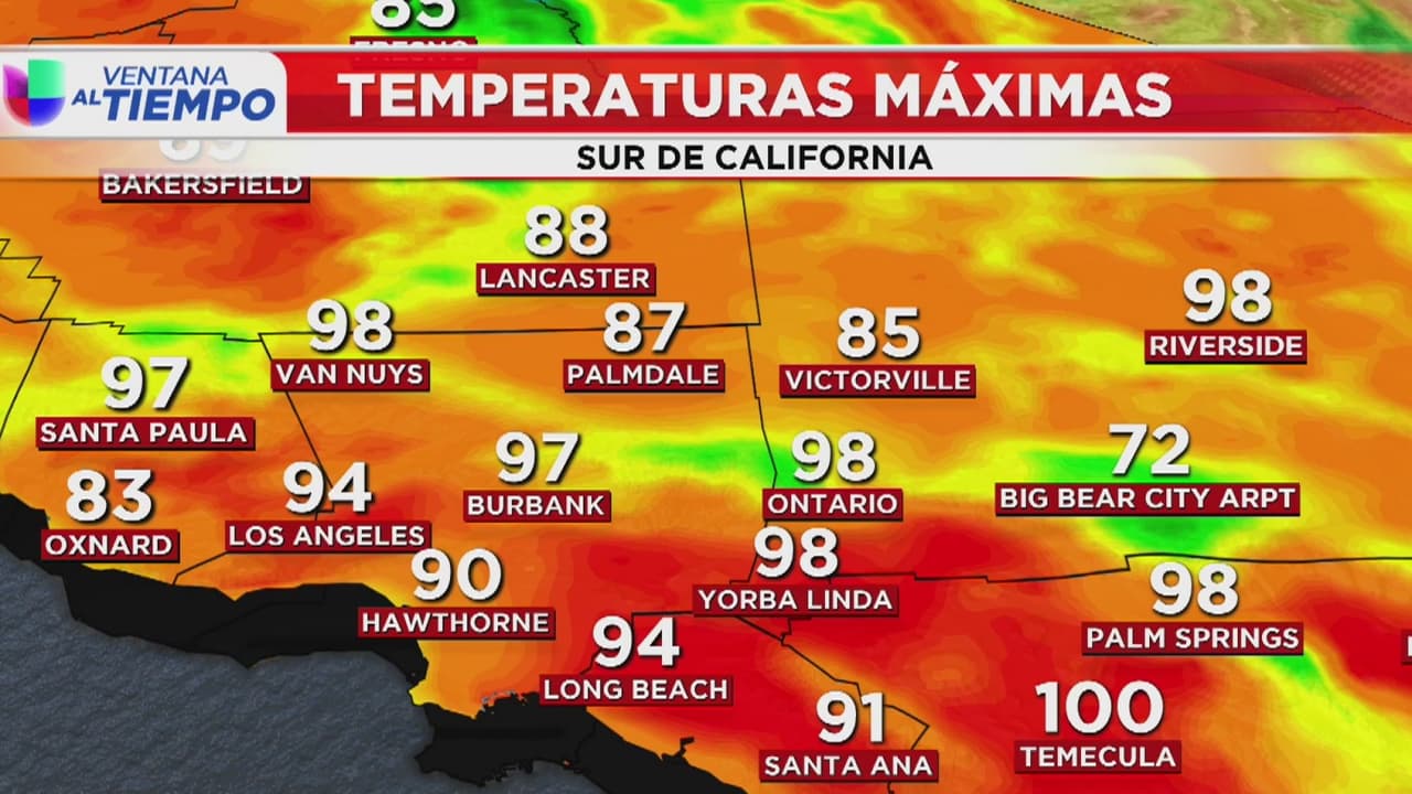 El termómetro marcaría entre 93 y 94 grados Fahrenheit con cielos parcialmente despejados. A la par, en zonas como Temecula, Riverside y Palm Springs podría haber registros entre 98 y 100 grados, algo que resulta peligroso ante la amenaza de incendios.