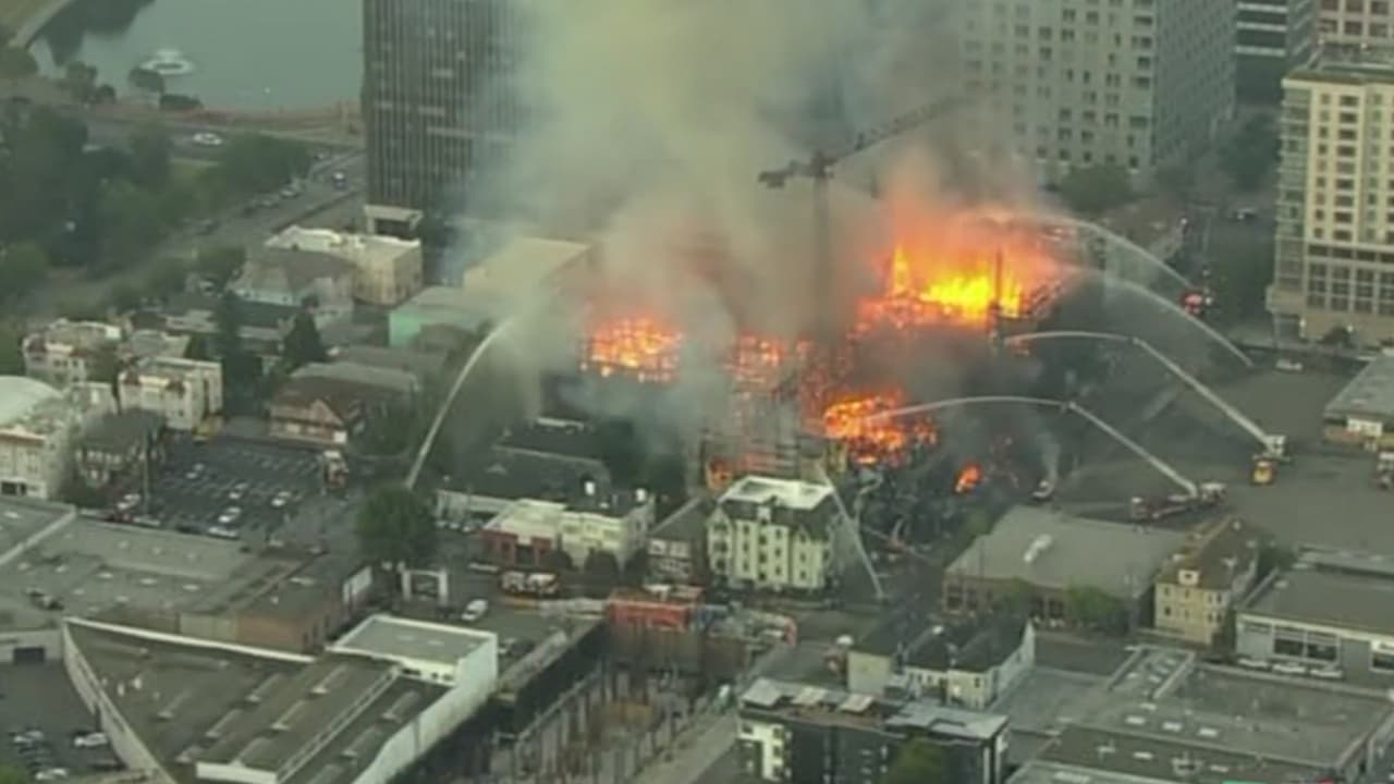 Emergencia por incendio en un edifico de viviendas en construcción en Oakland