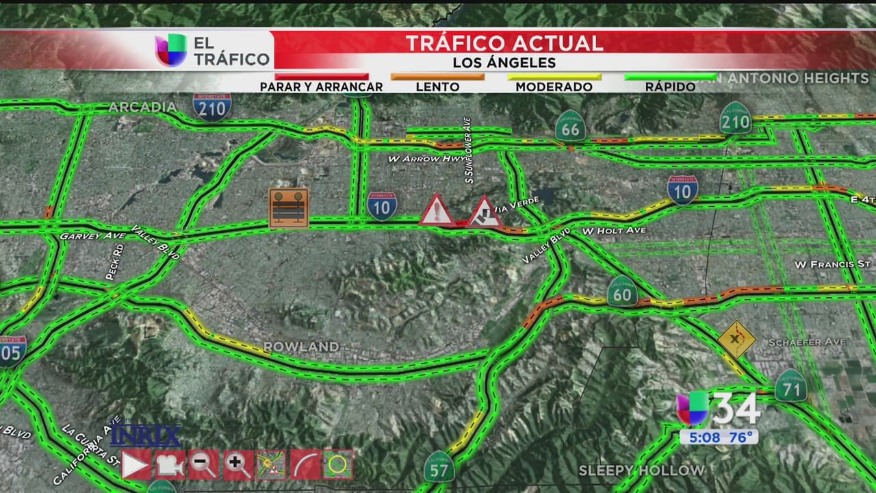 Las autoridades emitieron una señal de alerta sobre la 210 Este debido a un incendio, por lo que las rampas de acceso en ambos sentidos permanecerán cerradas hasta las 8:00 a.m.