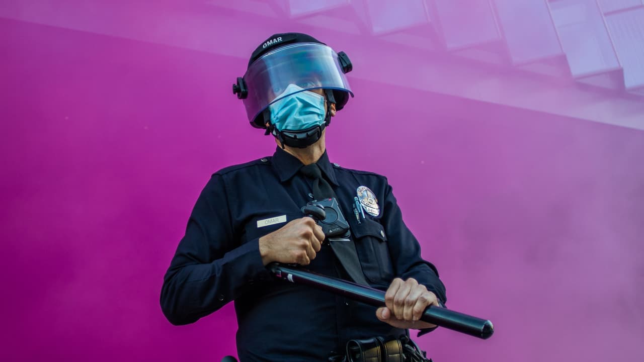 En un mismo evento, la policía de Los Ángeles busca generar consciencia sobre el crimen y el coronavirus