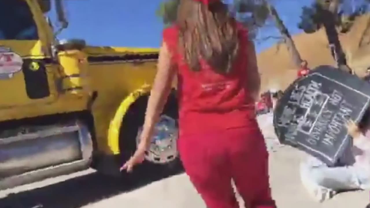 En video: El conductor de un camión causó gran tensión durante una protesta en Porter Ranch