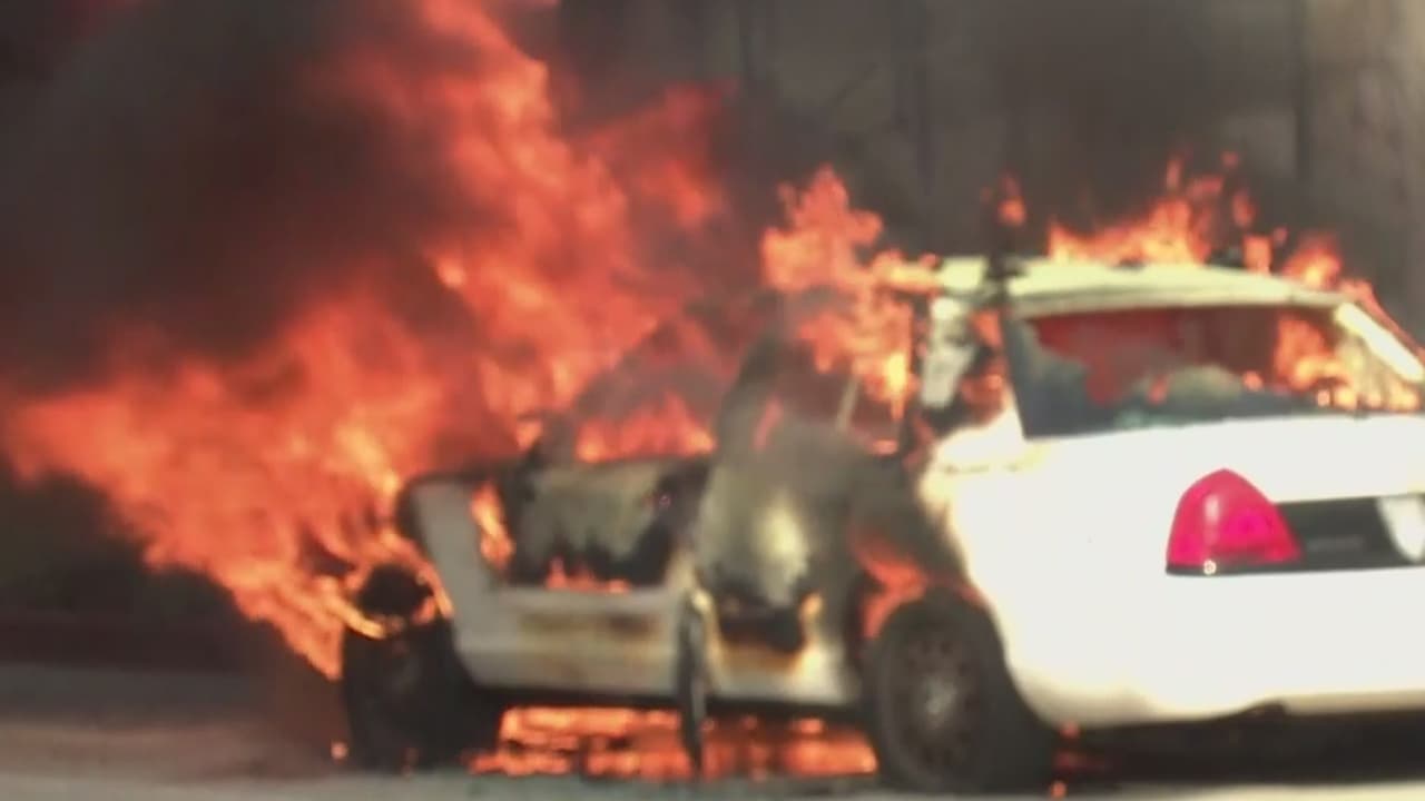 En video: Patrulla de policía en llamas durante las protestas por la muerte de George Floyd