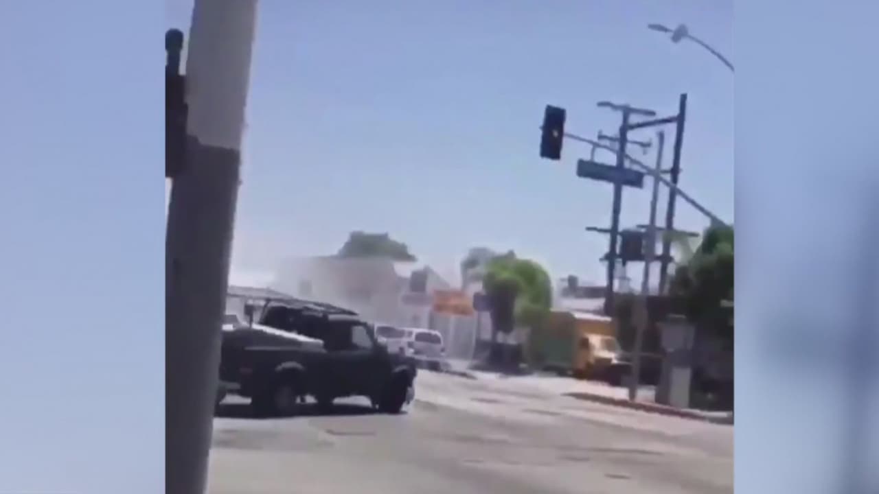 En video queda registrado un aparatoso accidente en Huntington Park luego de que un hombre pierde el control de su auto