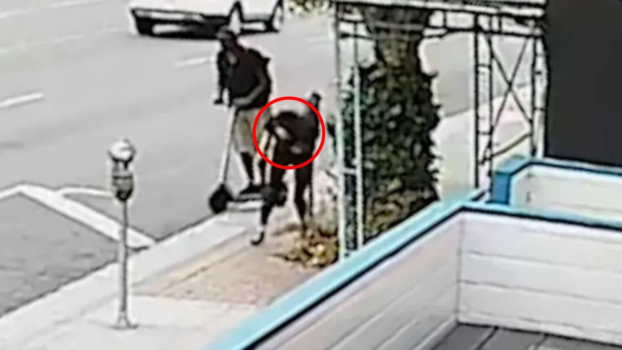 En video: Un hombre golpea a una mujer con extintor de incendios en una calle de Los Ángeles