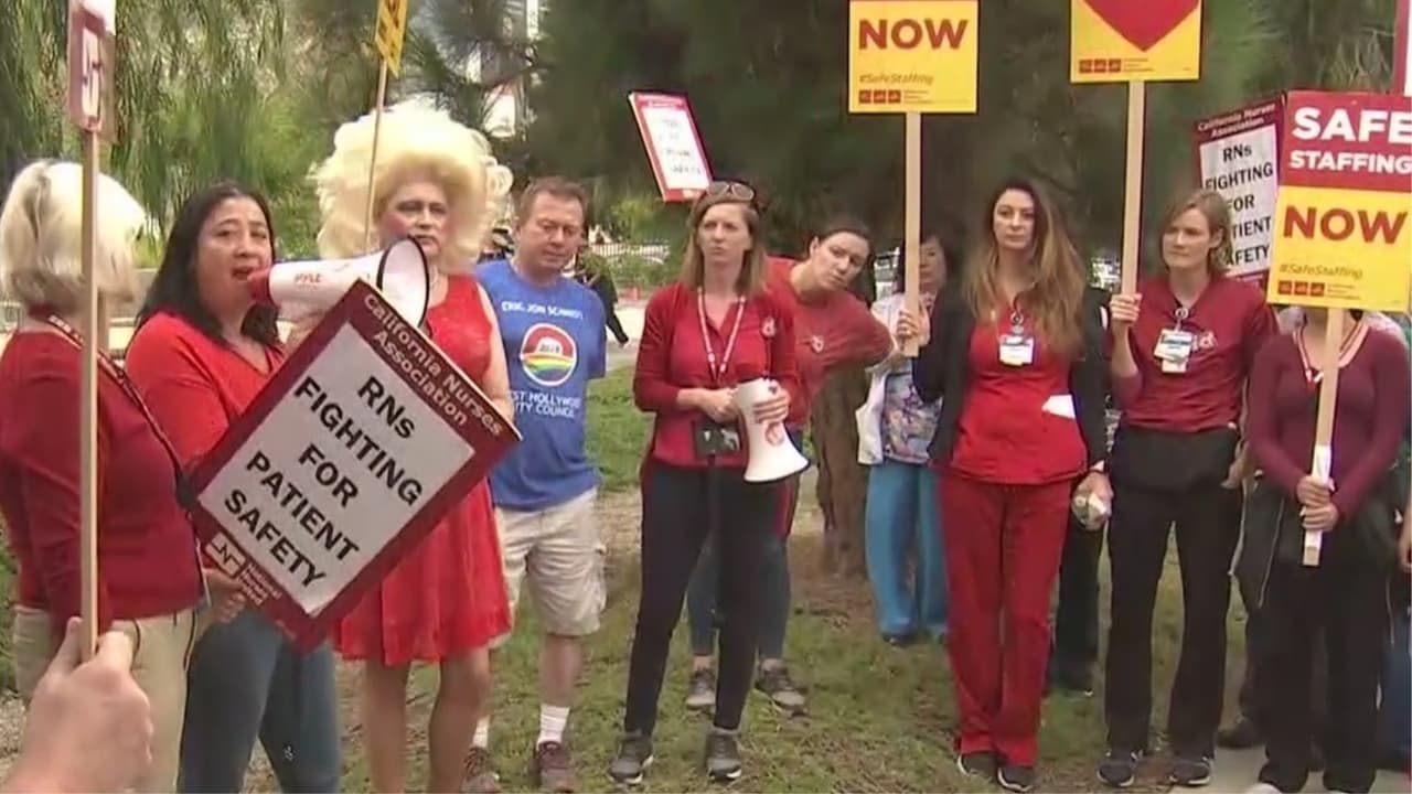Miembros de la Asociación de Enfermeras de California (CNA) realizaron una manifestación afuera del centro médico Providence Saint John's en Santa Mónica. Las partes están en negociaciones contractuales y el hospital declaró estar en la mejor disposición de llegar a un acuerdo.