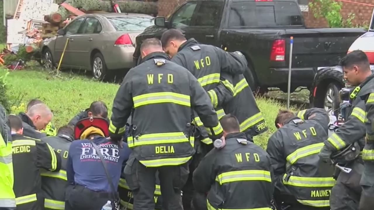 Equipo de emergencia de California enviado a Carolina del Norte logra rescatar a un hombre atrapado en una camioneta