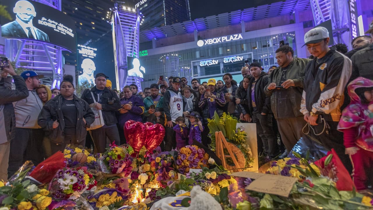 Cientos de seguidores de Los Ángeles Lakers se reunieron afuera del Staples Center, la casa de uno de los más grandes campeones de la historia del baloncesto que murió este domingo a los 41 años en un accidente de helicóptero en el sur de California.