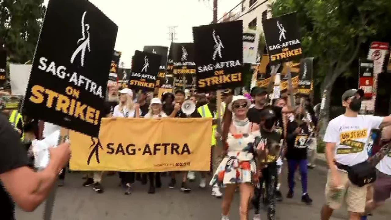 Escritores y actores marchan hasta los estudios Paramount insistiendo en que tienen que pagarles más