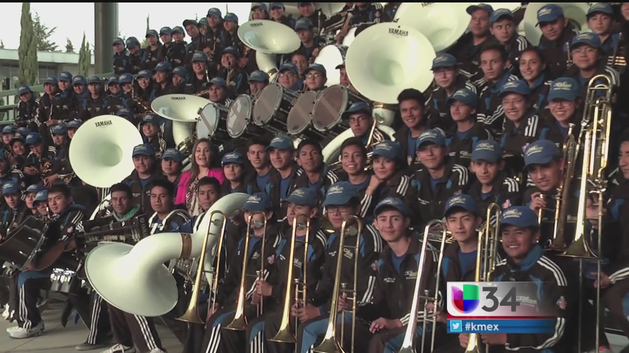 Emoción y orgullo reflejan los rostros de 160 jóvenes de Puebla, México, integrantes de la banda Águilas Doradas, quienes participarán en el Desfile de las Rosas.