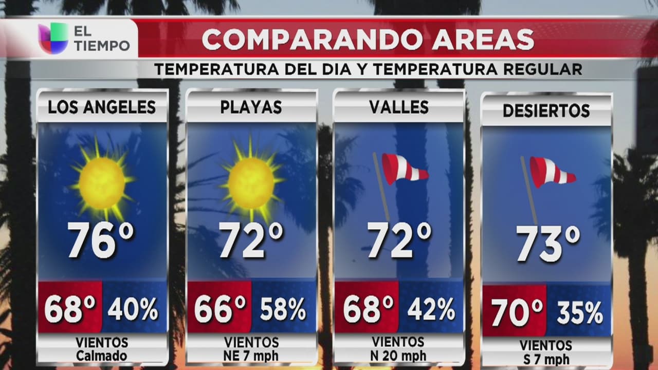Se espera tiempo seco, vientos calmados, cielos despejados y que las temperaturas estén entre los 40 y 68 grados Fahrenheit en Los Ángeles y sus alrededores.