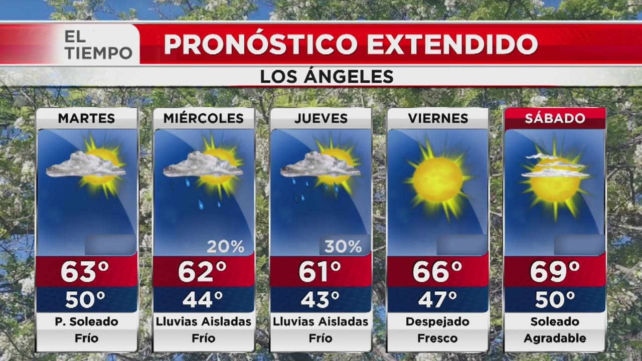 Se esperan cielos parcialmente nublados y que las temperaturas estén entre los 50 y 63 grados Fahrenheit en Los Ángeles y sus alrededores.