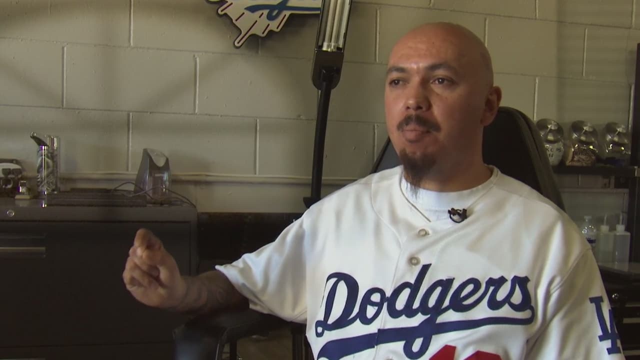 Este artista hispano utiliza la piel humana como lienzo para plasmar su pasión por los Dodgers