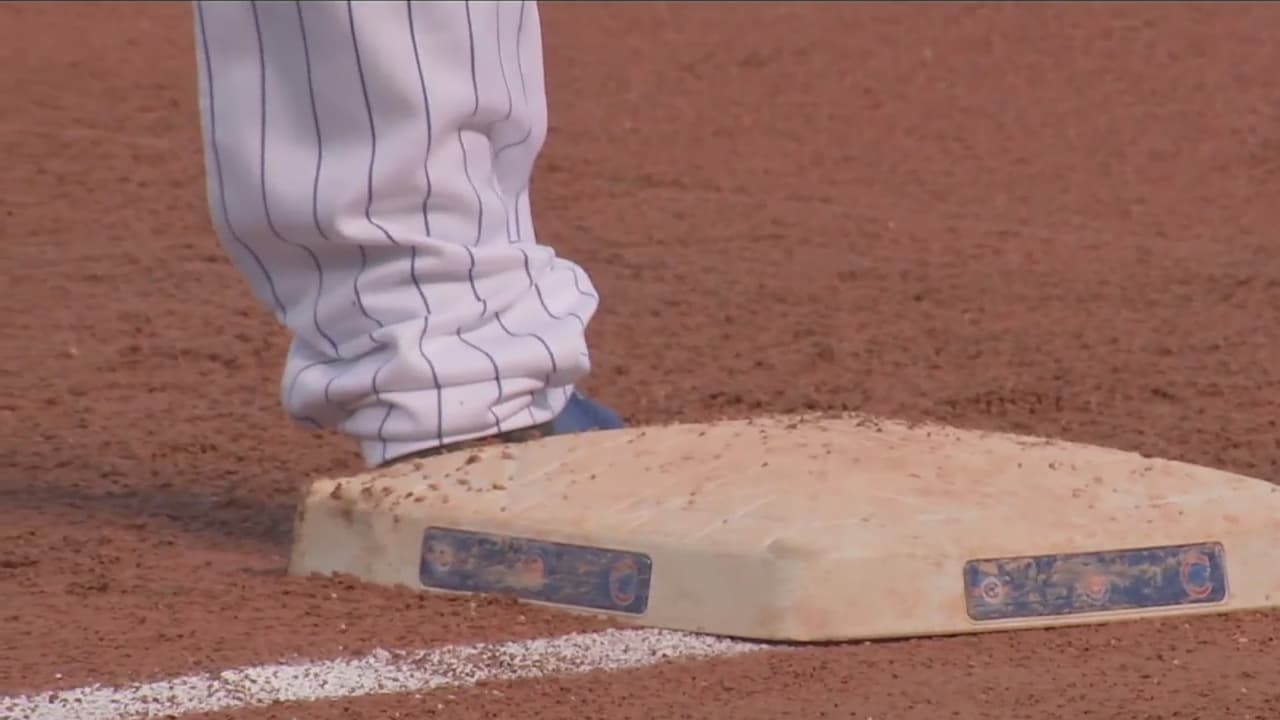 Este hombre es el que prepara las bases en el campo de béisbol de los Dodgers