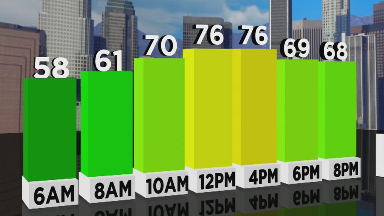 Las temperaturas más altas del día se registrarán entre las 12:00 del mediodía y las 4:00 de la tarde, y llegarán a 76 grados. A partir de este jueves el cielo estará más despejado y habrá más calor.
