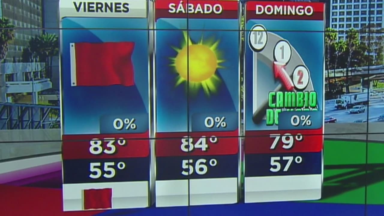 Los vientos de Santa Ana en el sur de California han ocasionado las llamas en varias zonas, por lo que se recomienda a las personas no realizar actividades al aire libre. La temperatura máxima estará en los 83 grados Fahrenheit y la mínima en los 55 grados.