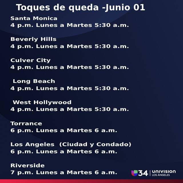 LOS ÁNGELES, California - Múltiples ciudades del sur de California, declaran toque de queda desde este lunes 1 de junio.
