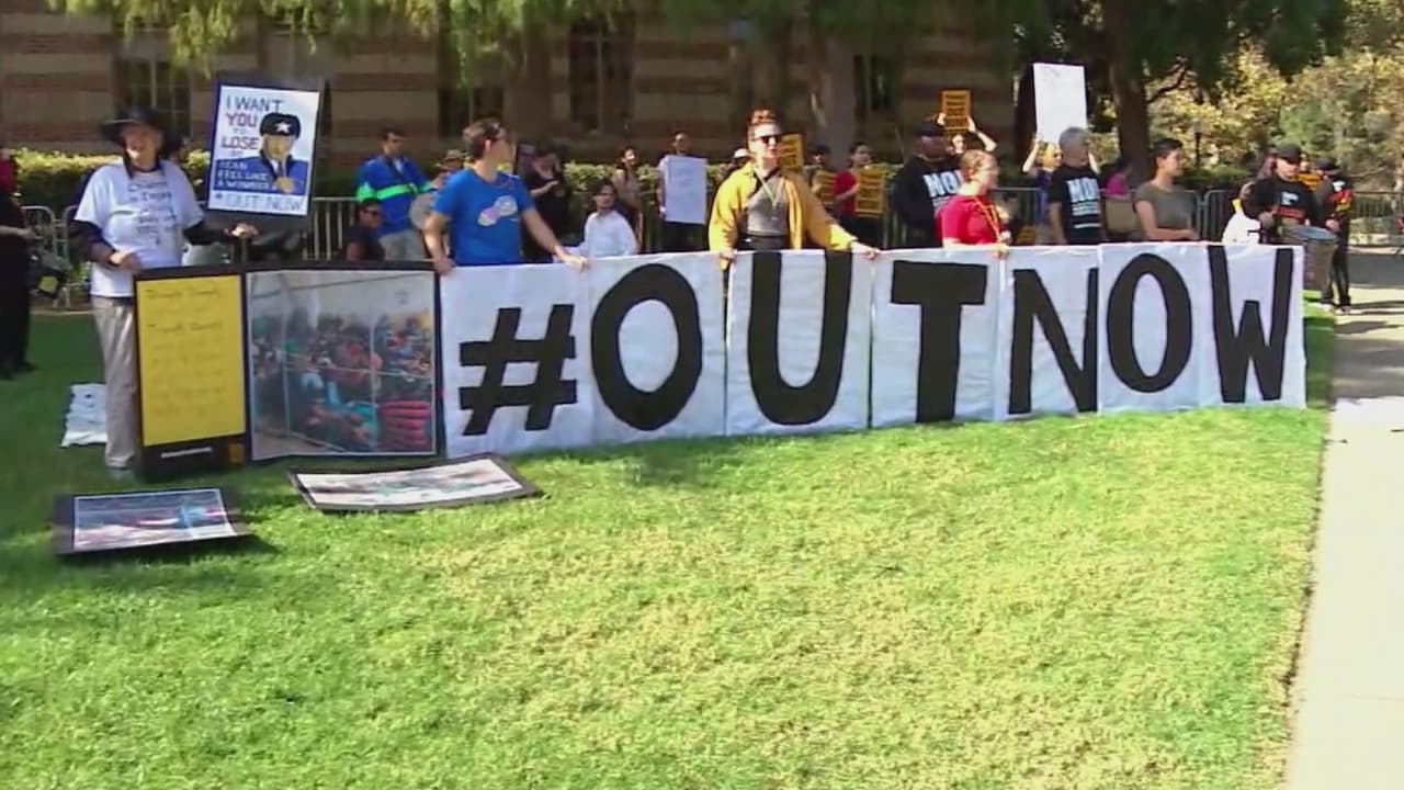 Estudiantes de UCLA reciben con protestas a Donald Trump Jr. durante la presentación de su libro