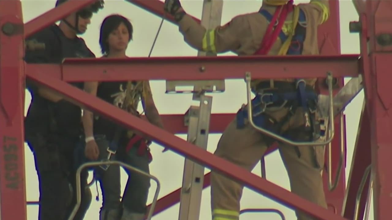 Evalúan la salud mental de una mujer que se atrincheró en una grúa de 150 pies de altura en el centro de Los Ángeles