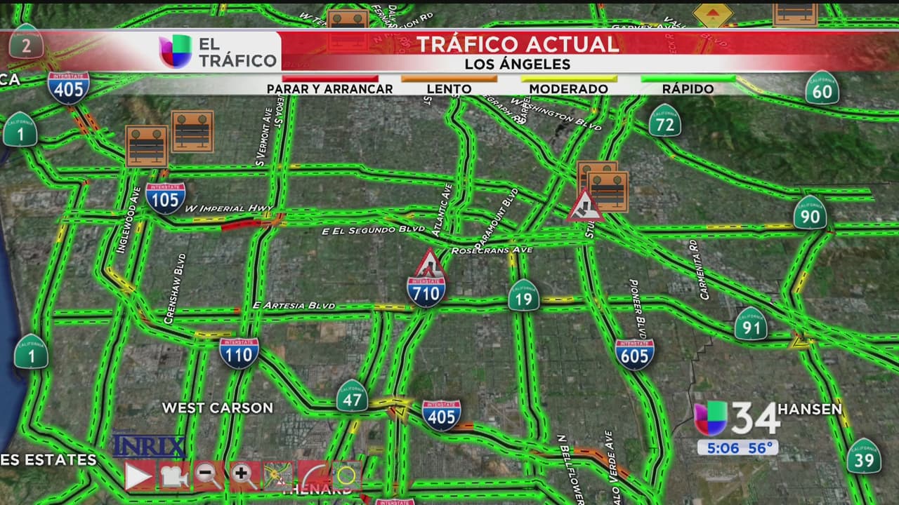 Un percance está paralizando por lo menos un carril de la 605 Sur a la altura del Boulevard Firestone afectando el tránsito en la zona. Recuerde evitar la 5 Sur en la zona de Santa Clarita.